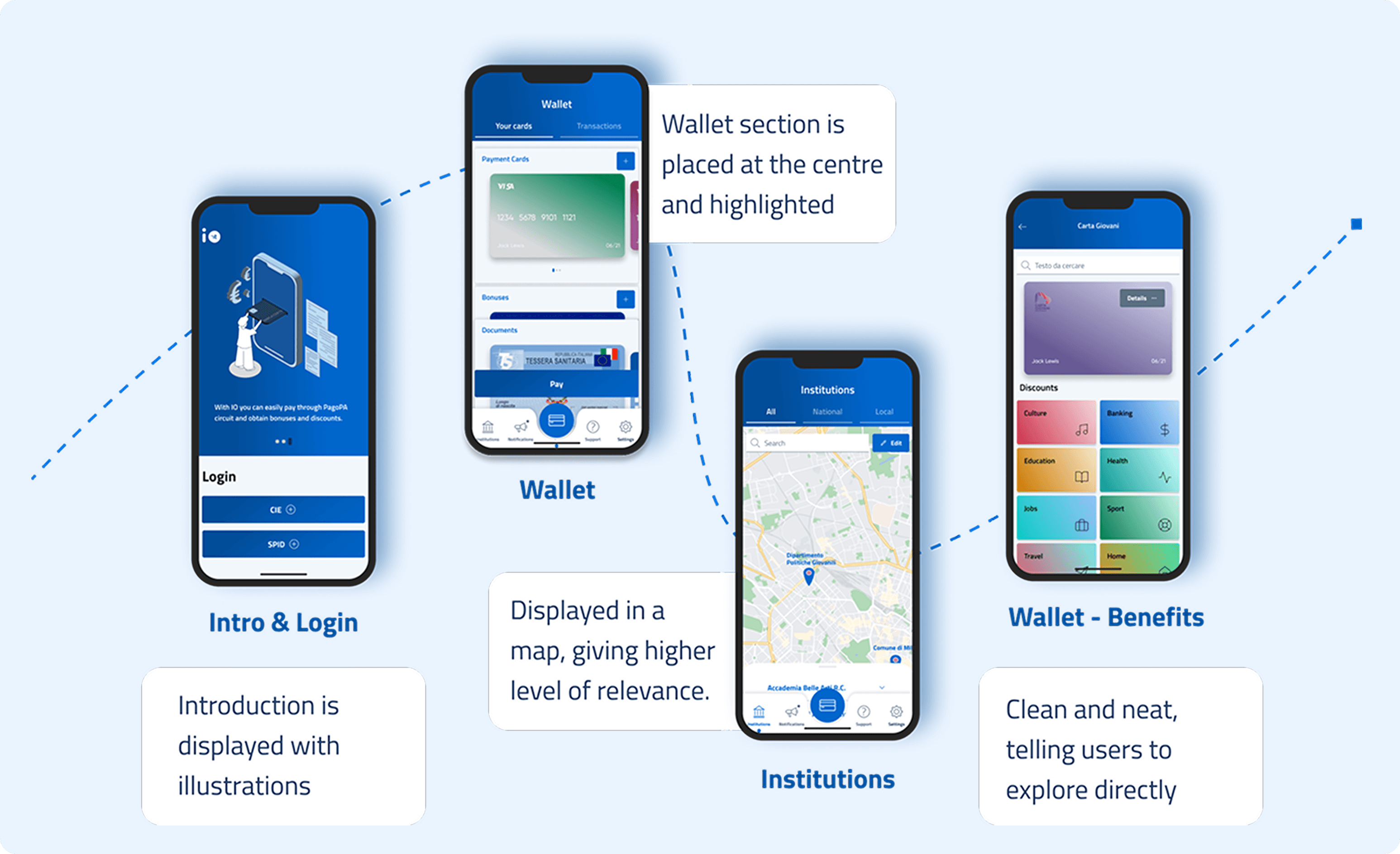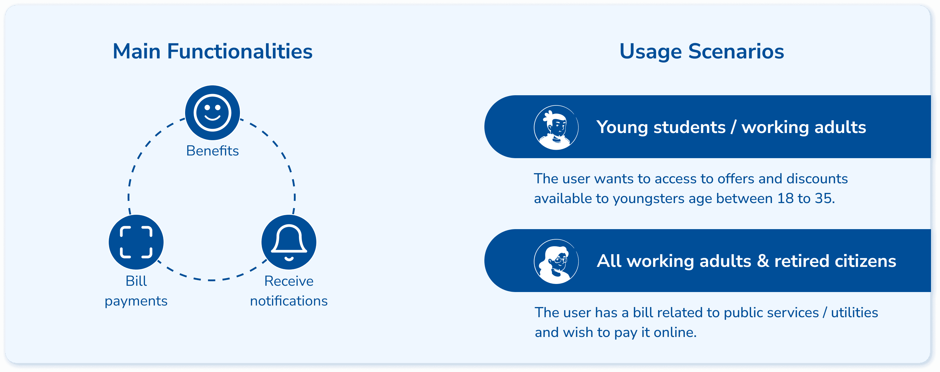 App ‘IO’ is an Italian integrated public service platform. It provides a single point of access to interact with local and national public services easily. In essence, based on its 3 core functionalities, it targets 2 main user groups and their corresponding distinctive usage scenarios.