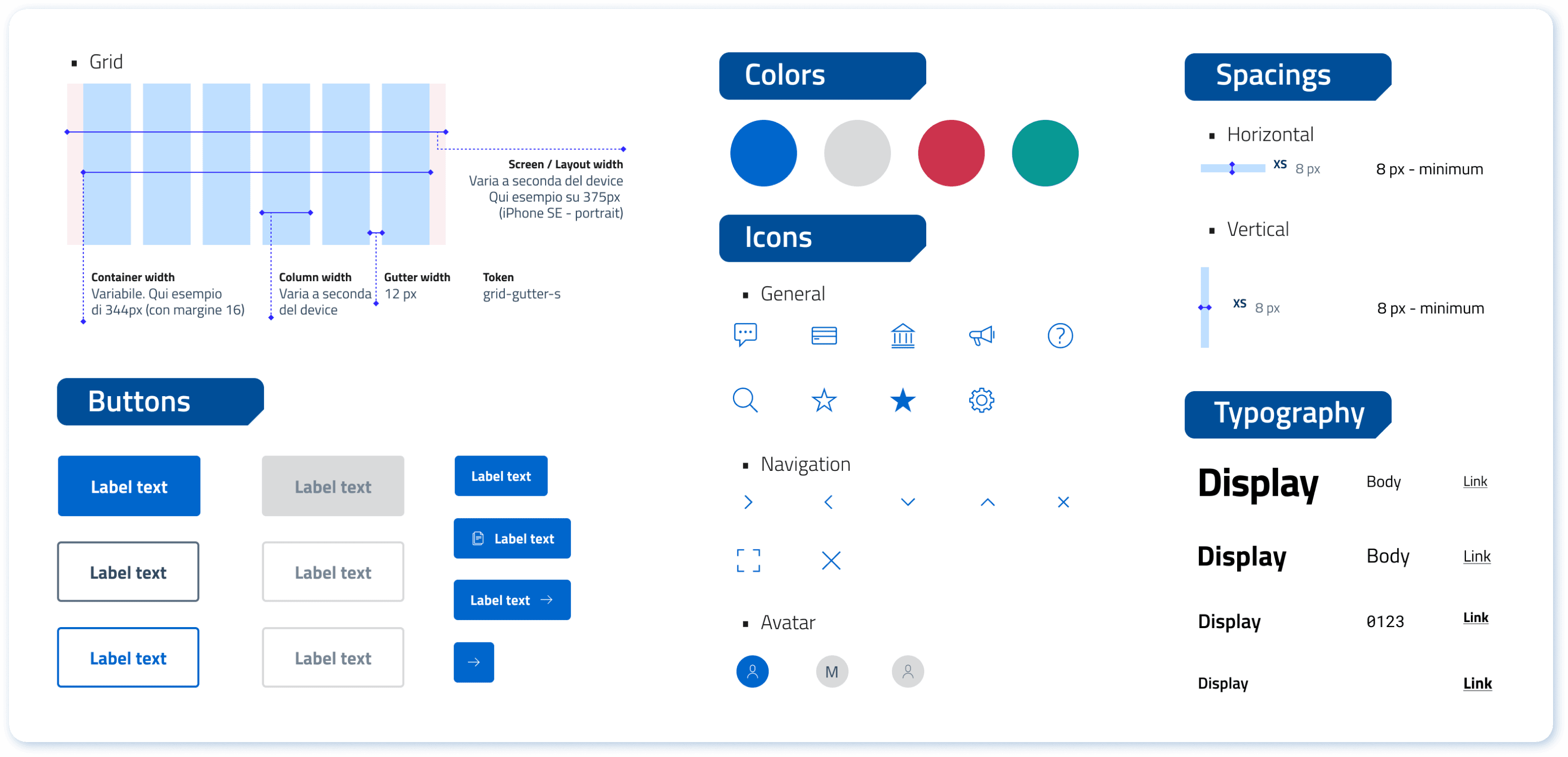 Since currently the App is using an existing mature design system made by Designers Italia, we decided not to create a new one but generally extracted the usable parts.