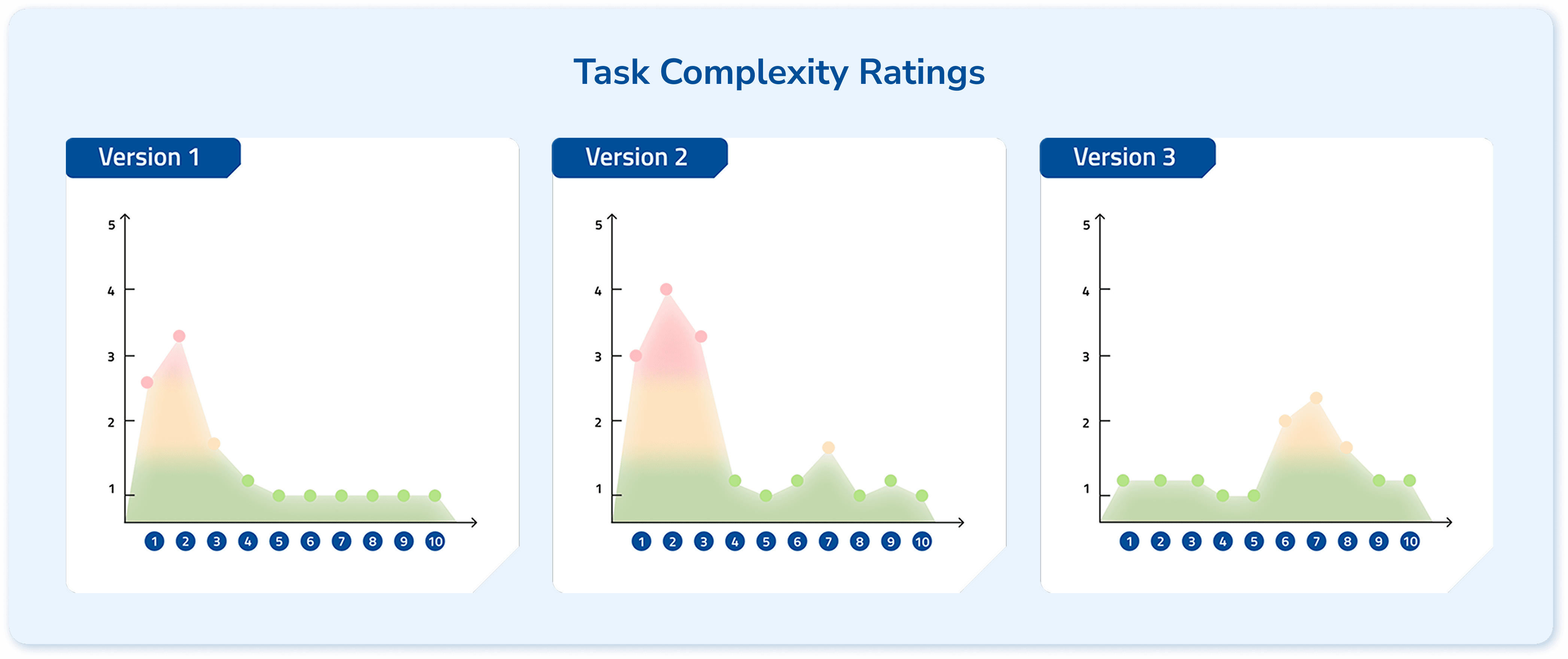 From Version 1 & 2 to Version 3, we eliminated problematic tasks, indicating effective iteration.