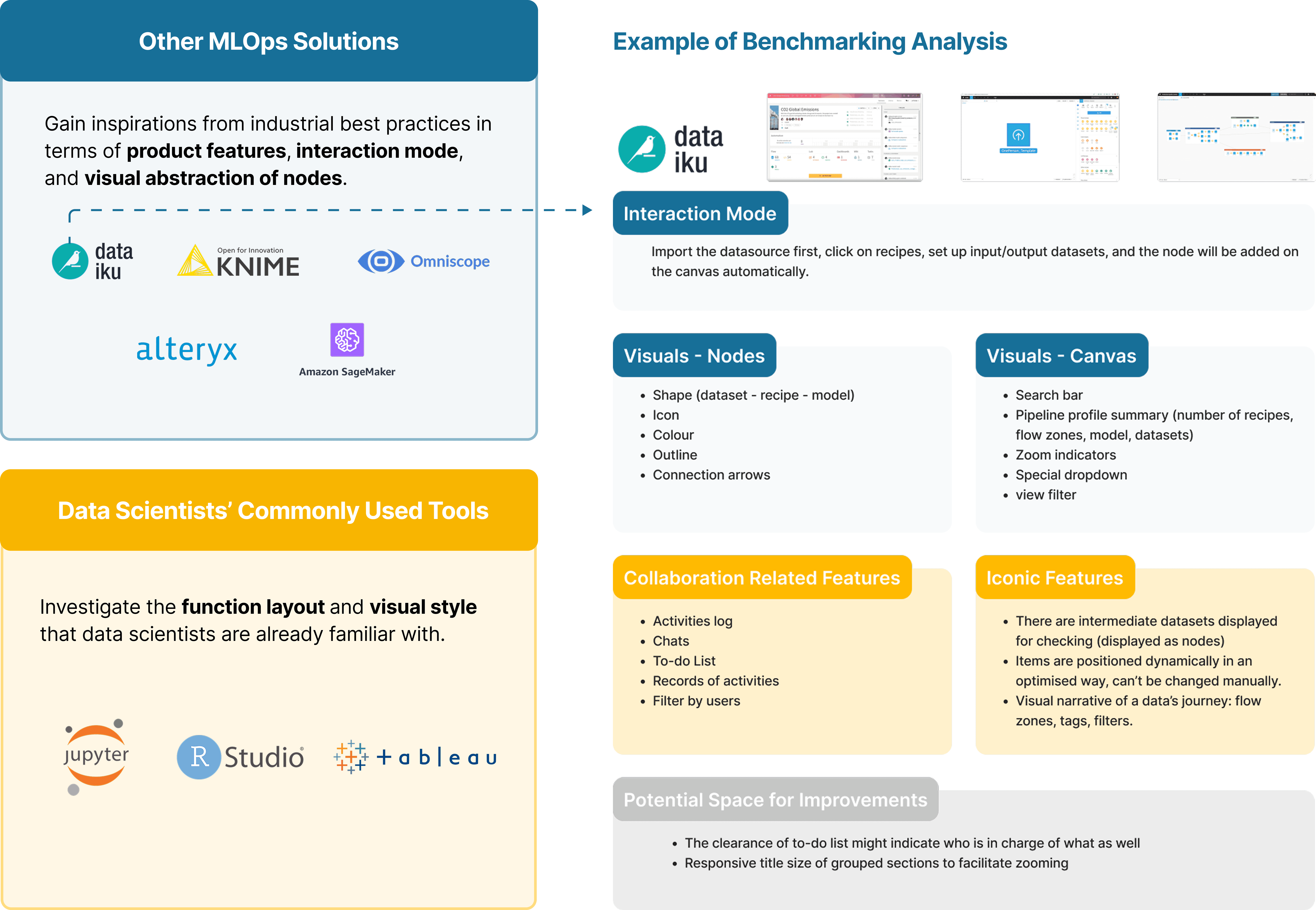 I also learned from both industrial best practices of MLOps tools as well as users' current commonly used tools to learn about the current product ecosystem and user's familiar design patterns.