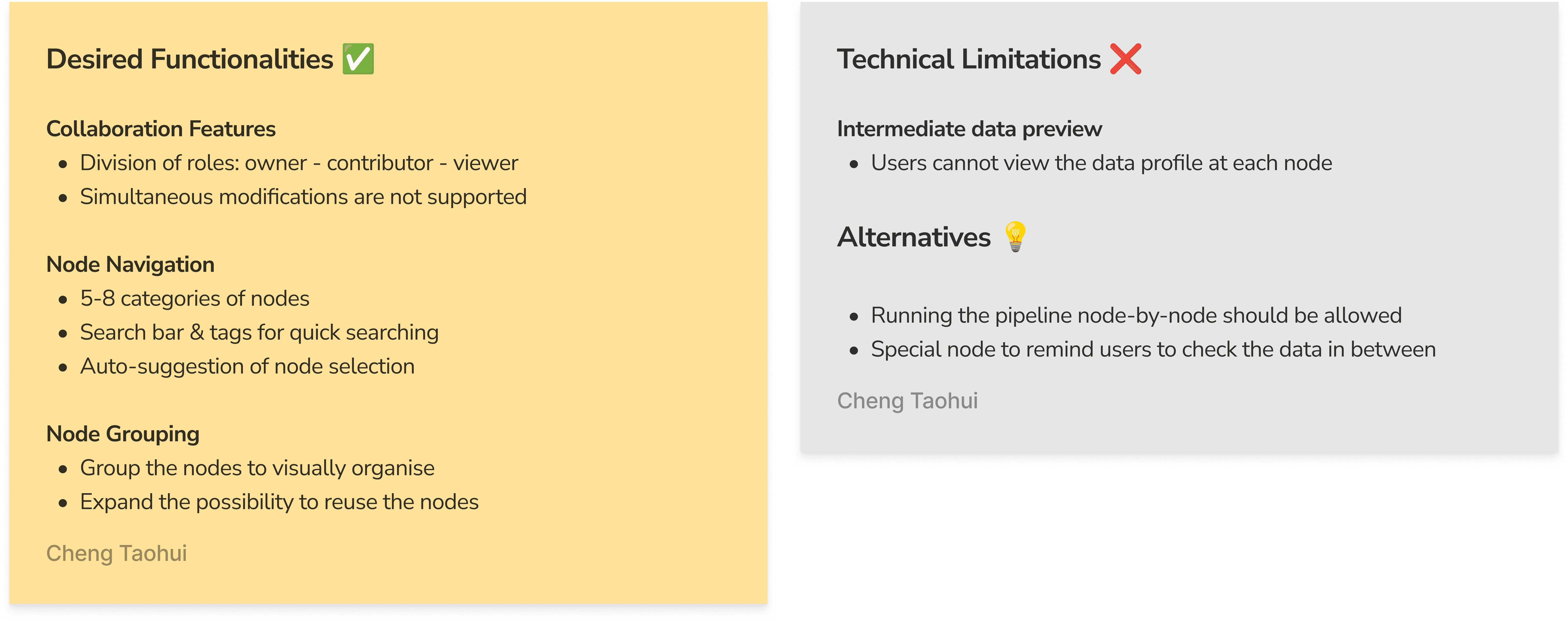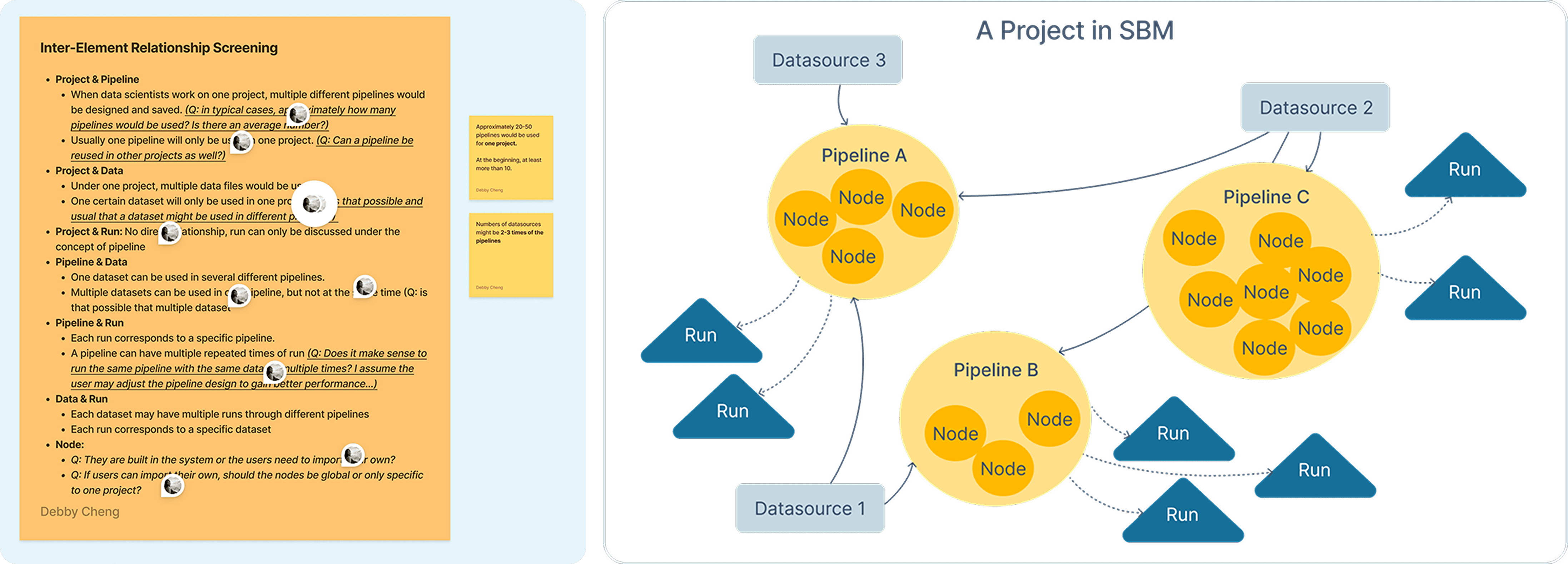 To proceed with other functions of SBM, including data pipeline designer, what would be our desired functionalities and what is our technical limitation? The workshops involved designers, product manager, data science experts, and developers.