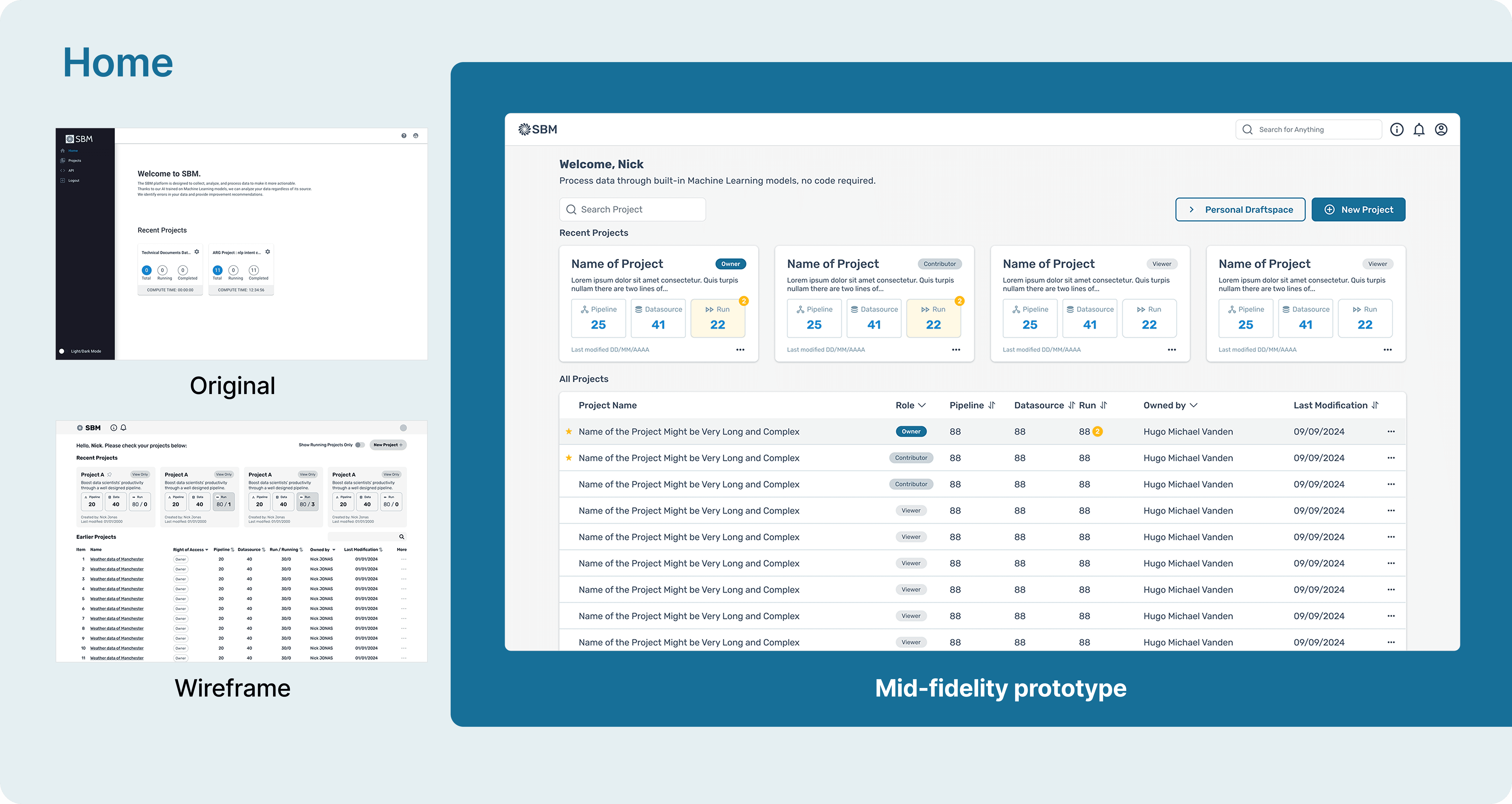 When I joined the project, there was already a proof of value (POV) version of primary interfaces, which list out user's data science projects as well as necessary assets within them. The interfaces were drafted by the product manager intern, leaving remarkable space for improvement.