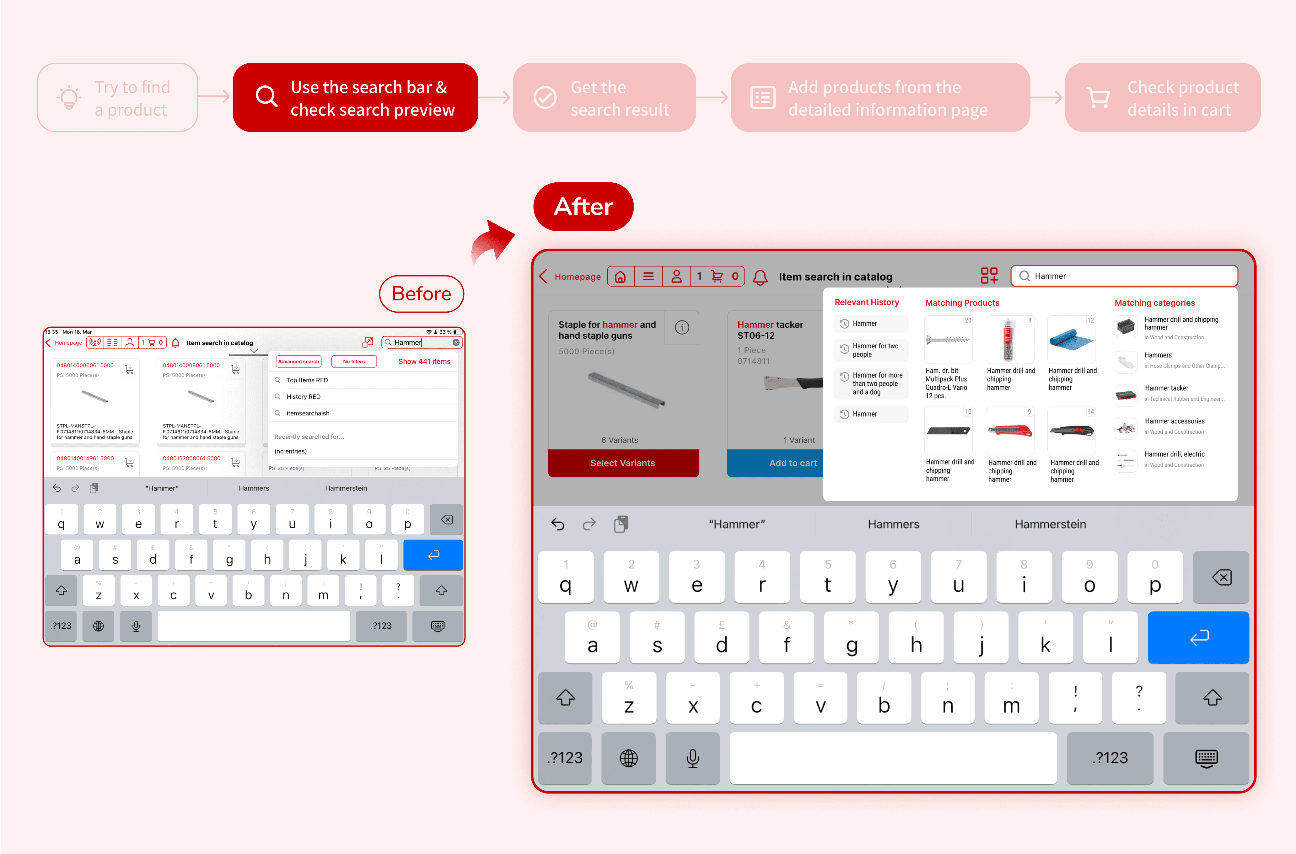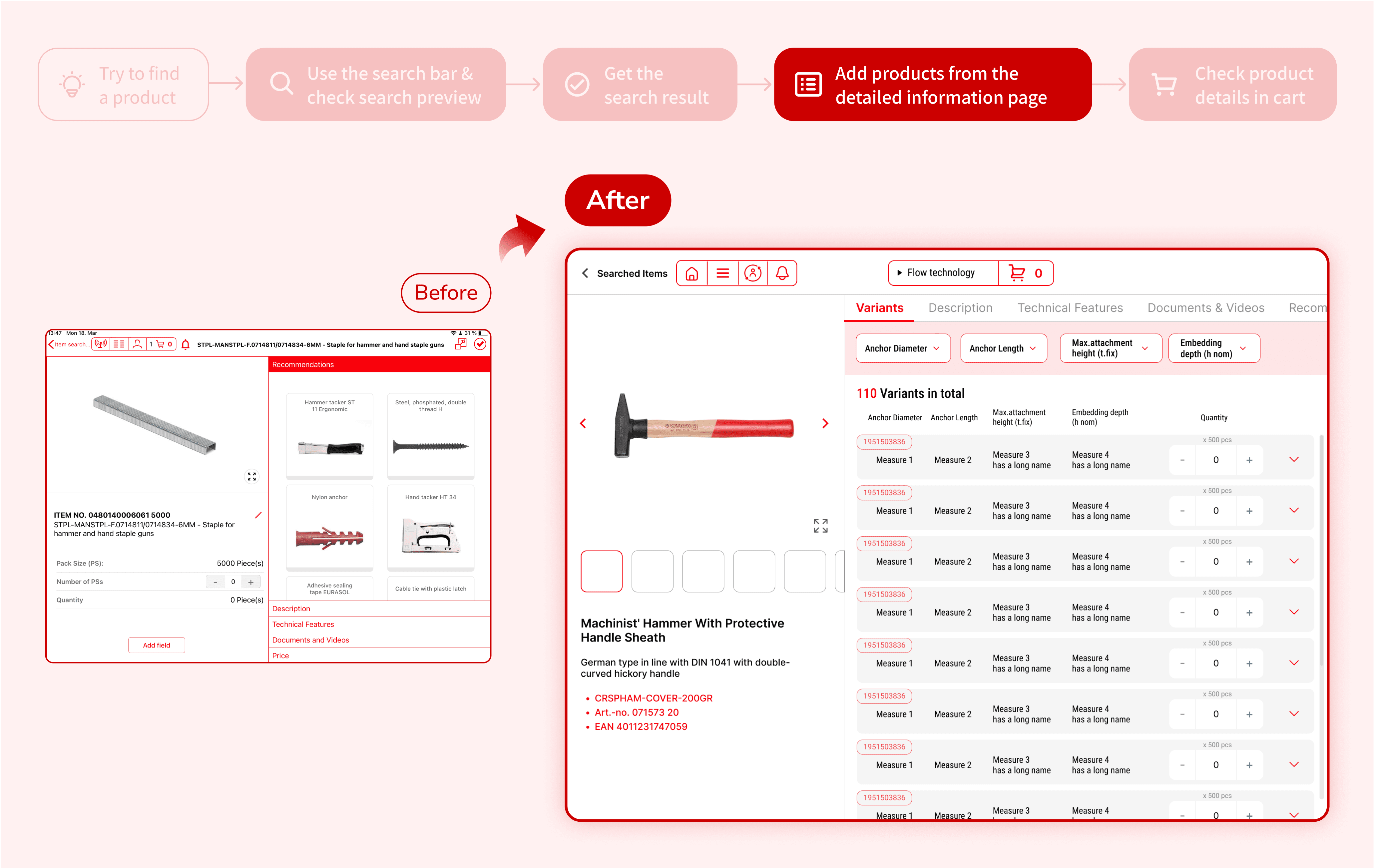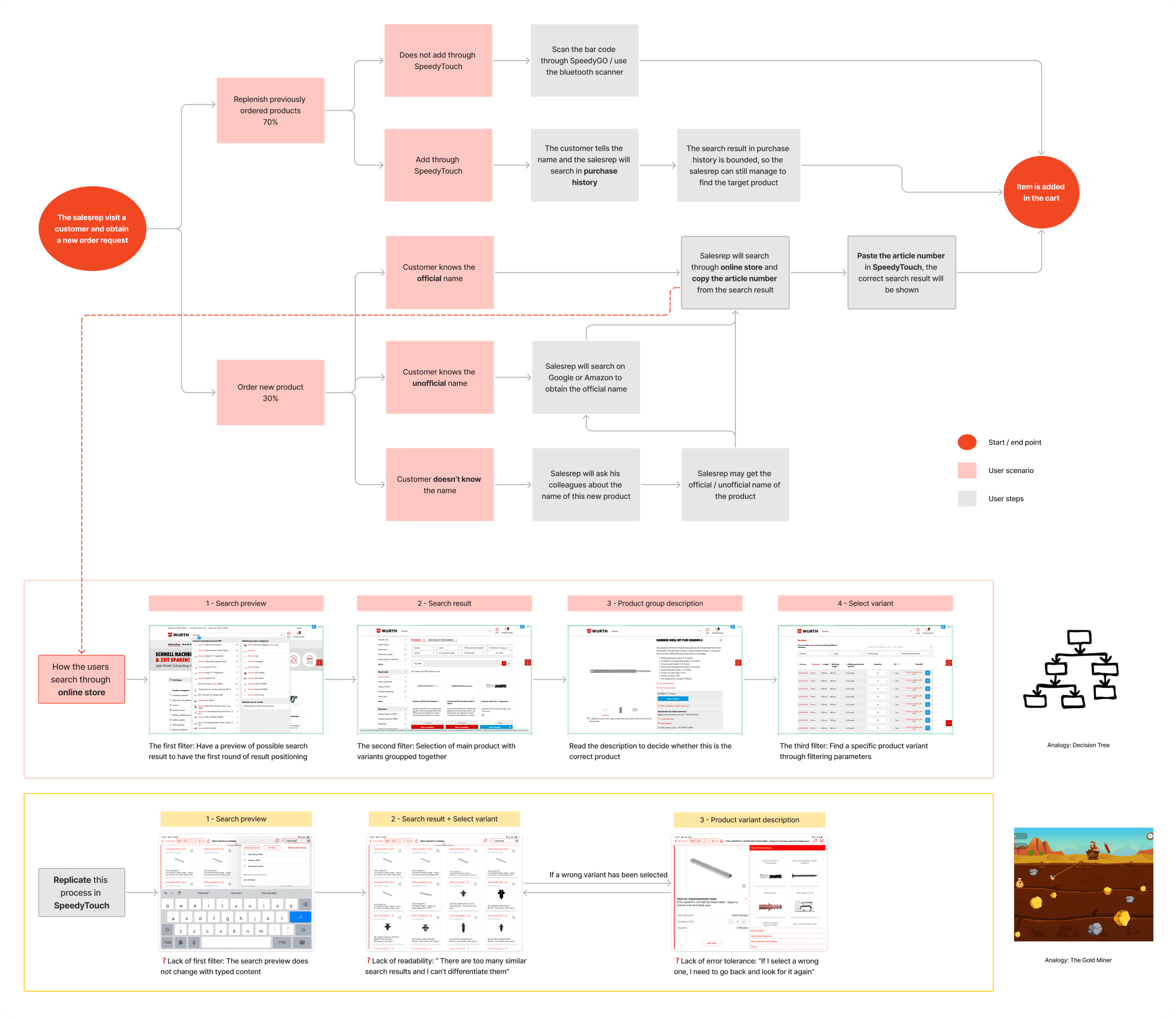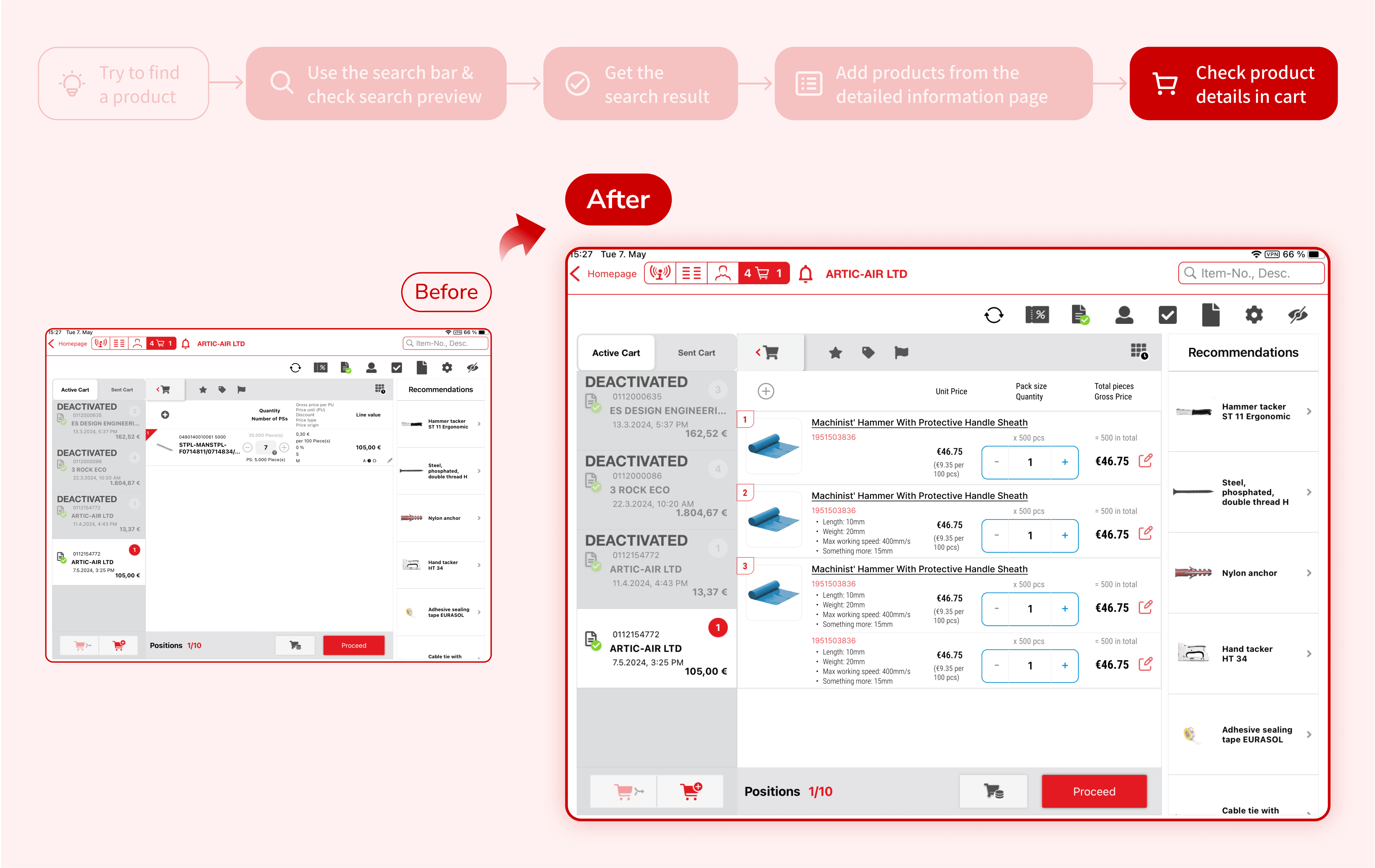 However, a distinctive pain point emerged: instead of searching for new products directly within SpeedyTouch, users frequently switched to Würth's online shopping website to fulfill customer requests. This behavior disrupted the flow of customer interactions and created inefficiencies.