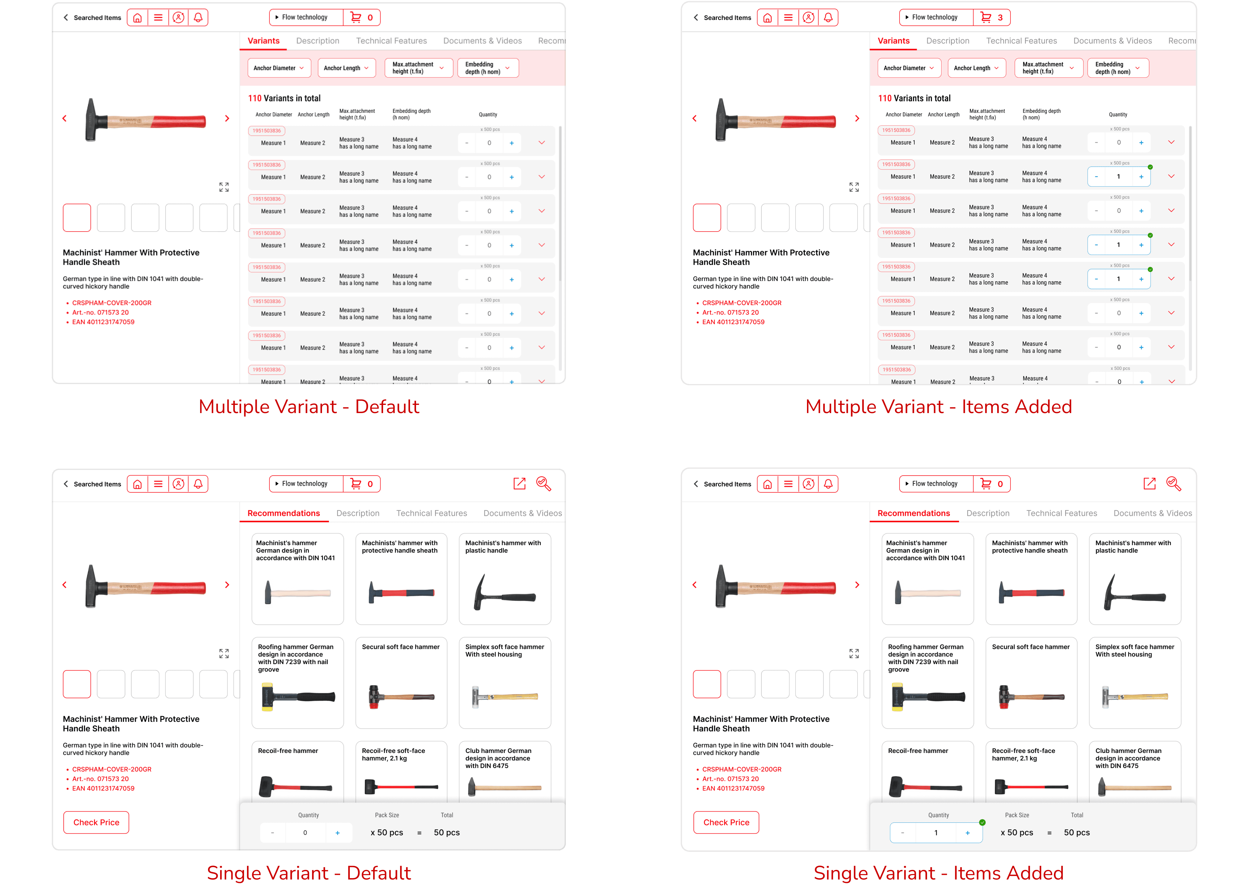 Design for Extreme Products: We found that ~70% of products with multiple variants have no more than 4 differentiating parameters in the database, and the current product detail page is designed based on this fact. To provide a more complete solution, I would also provide a design solution for those that have more than 4.