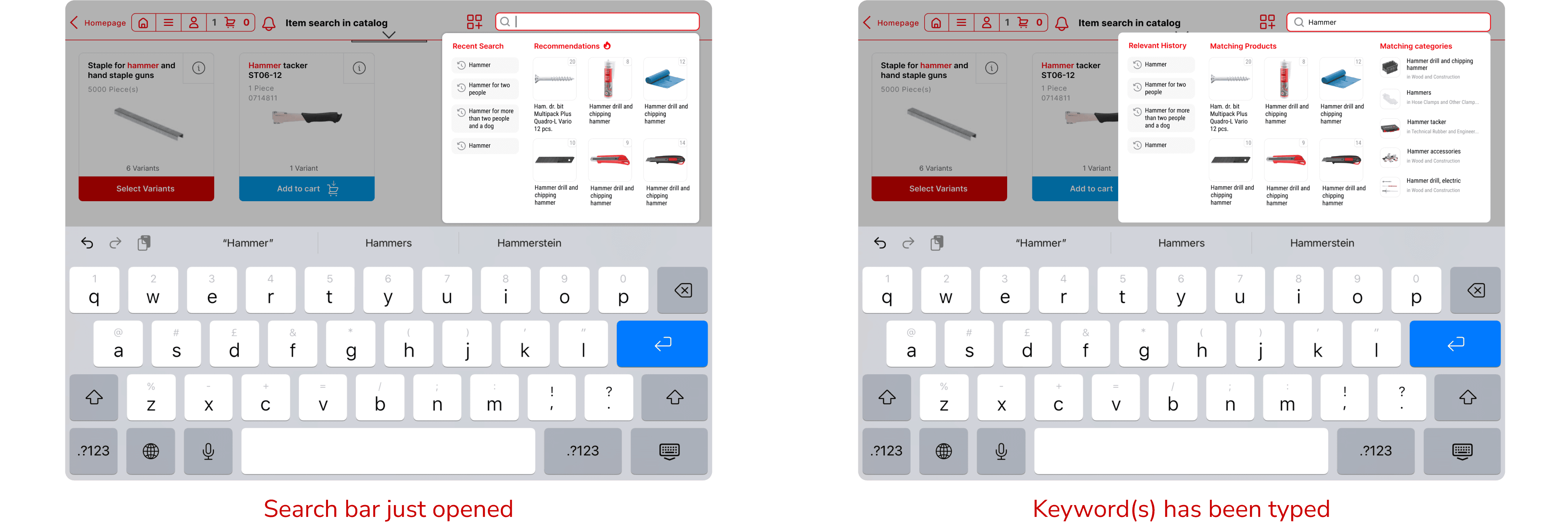 Design for Faceted Search: For Würth's massive product catalog, in order to further enhance the search experience, faceted search can be adopted to allow users filter through certain characteristics (colour, material, length etc) in search result page.