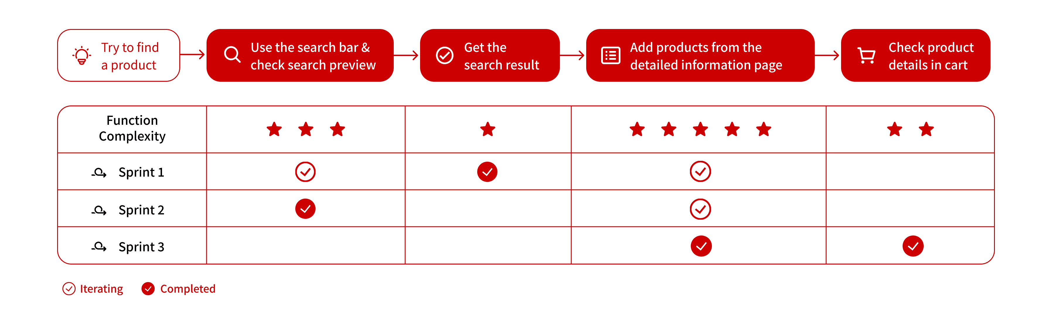 Following the MECE principle (Mutually Exclusive, Collectively Exhaustive), all possible user scenarios and the corresponding user steps have been mapped out.